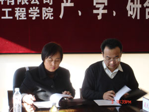 签字仪式由学院党总支书记夏天民同志主持,首先介绍了双方在学术交流、人才培养、项目合作、公司提供工大学生实习、实践基地、毕业生就业等主要内容,张龙院长与孙江燕总经理共同签署合作协议。