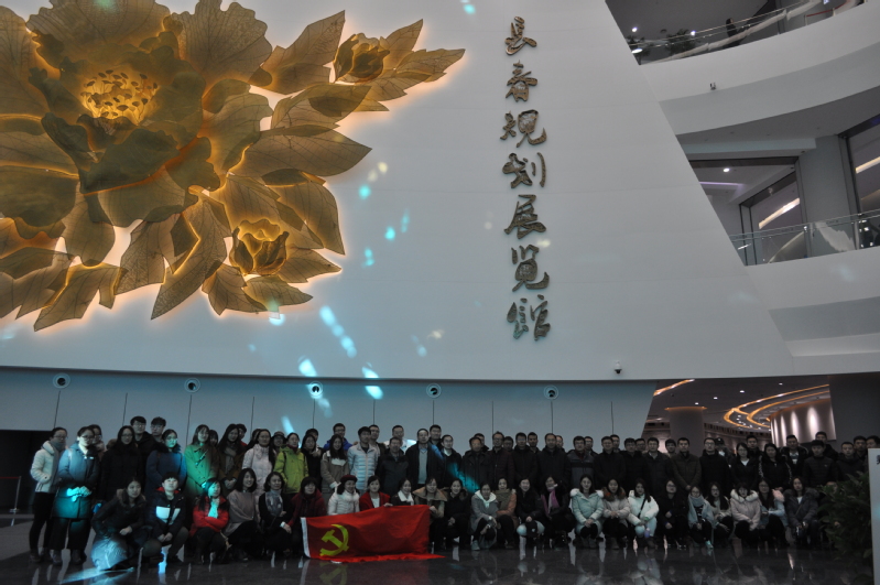 长春市规划展览馆由规划展览馆、博物馆、美术馆“三馆”融合组成,由中国工程院院士崔恺大师设计,重点展示了长春城市发展历史和城市规划愿景等内容。整个展区共分三层,一层城市变迁沙盘,以墙地投影结合城市历史沙盘演绎城市变迁历史;二层城市规划展区,展示的是城市总体规划的每一个细节和成就;三层城市未来规划区,展示未来城市的发展变化。通过参观大家了解了长春这座老城的发展历史、城市规划以及2080年的长春模样。参观过程中,支部党员频频驻足,惊叹于百年长春的发展变化,折服于现代科技发展水平。
