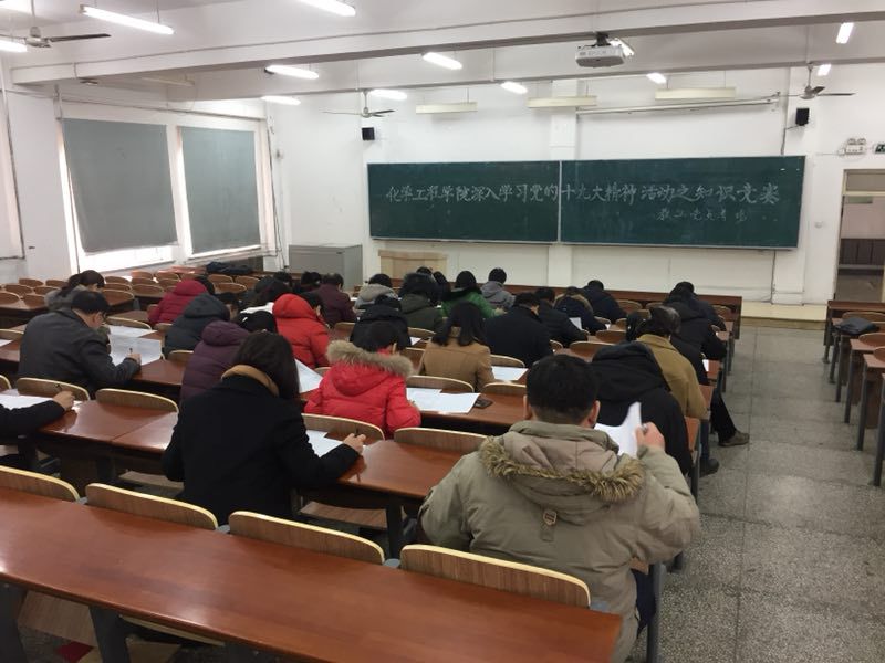 (通讯员 肖芳)2017年11月28日,bv1946伟德国际始于英国在南湖校区和林园校区同时开展了深入学习党的十九大精神活动之知识竞赛。本次竞赛共设三个开场,分别为教工党员考场,本科生党员考场和研究生党员考场,分别由学院党委书记刘喜明、党委副书记曹永利、辅导员助理赵月监考。