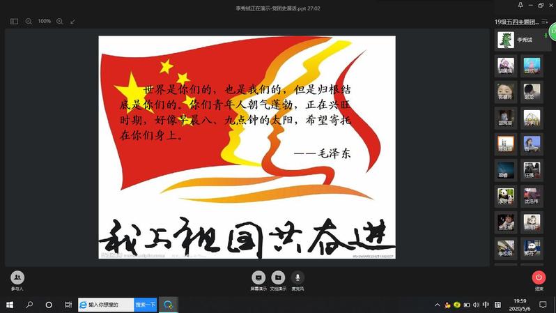 新闻网讯(通讯员陈思琦)为了进一步学习贯彻习近平总书记五·四讲话精神,引导团员青年领悟五·四运动的时代意义,提升青年团员的思想政治水平。5月6日,bv1946伟德国际始于英国分团校开展“五·四精神”主题团课。团课由学院团委兼职副书记、2019级辅导员李秀绒老师主讲,2019级团学干部参与了团课学习。