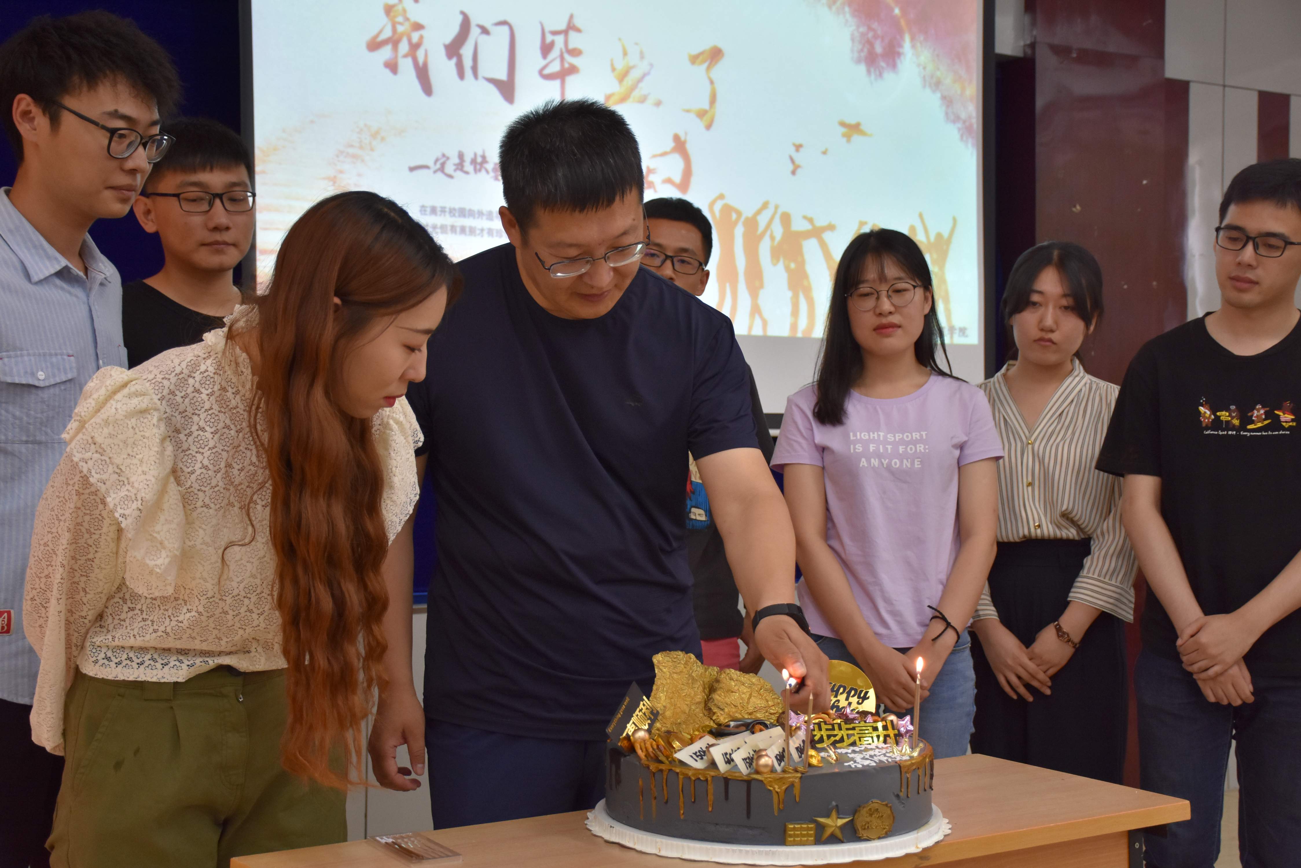伴随着现场工大版《成都》的动听旋律,在全场同学的掌声中,毕业班的学生代表进入会场。大家首先共同观看了同学们早已准备好的送给毕业生的视频短片,一句句祝福都是对学长学姐们的感谢和预祝。2015级辅导员曹永利老师为毕业班的部分学生干部现场颁发了服务学院奖奖杯和毕业纪念册,上面2015-2019印证了同学们四年来在学院学生工作上的辛苦付出。每名授奖的同学也用一段话表达了对学校的依依不舍和对母校的热爱。随后,曹老师与毕业生回顾了在一起的四年时光,叮嘱他们不忘初心,砥砺前行,为祖国的建设贡献青春力量。最后,学院为毕业生送上了祝福的蛋糕和寓意踏上顺利征程的饺子,欢送会在全场《再见》的歌声里圆满结束。