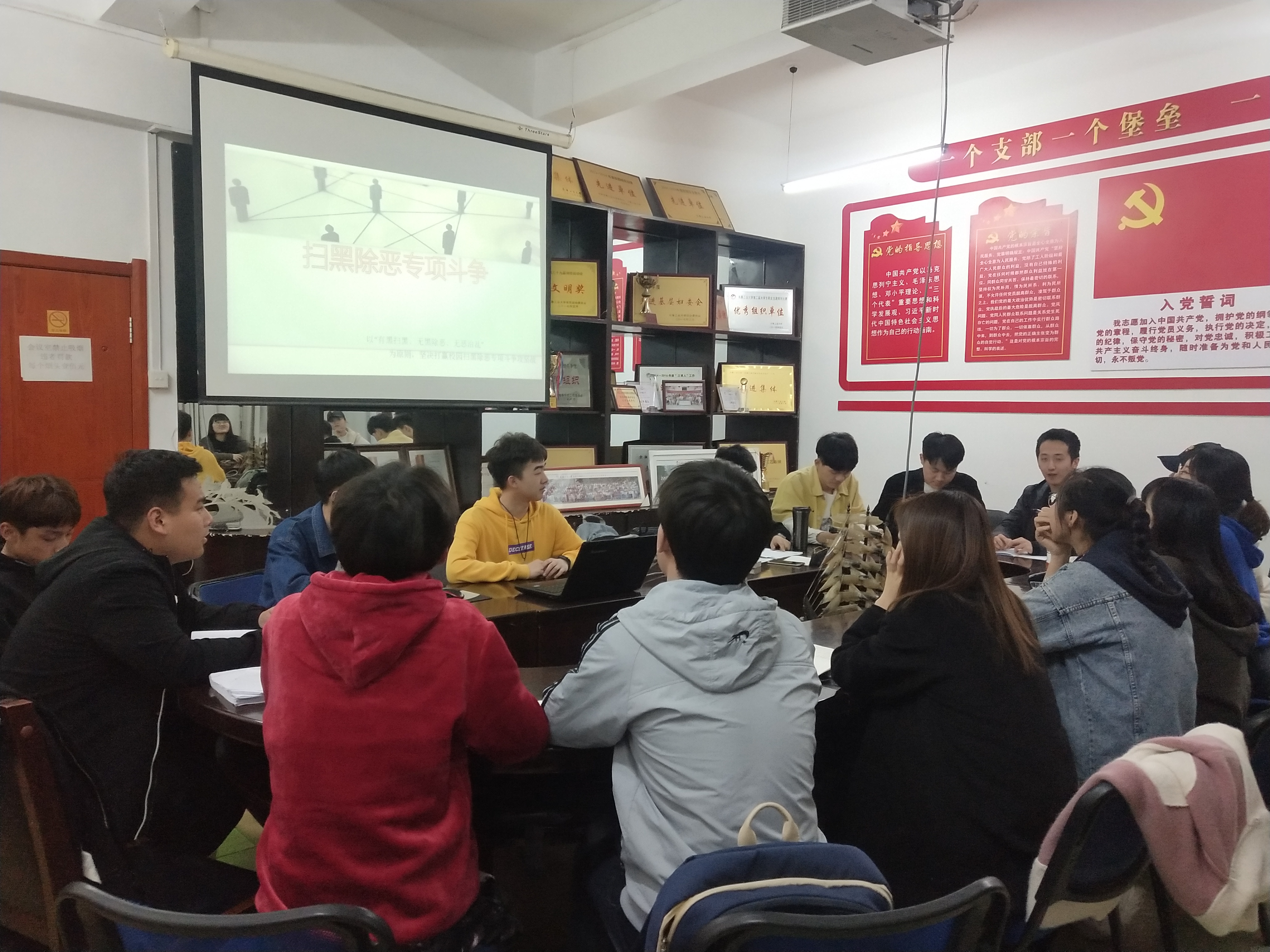 新闻网讯(通讯员于添政)为进一步贯彻落实《中共中央国务院关于开展扫黑除恶专项斗争的通知》精神,切实增强开展扫黑除恶专项斗争的责任感和使命感。bv1946伟德国际始于英国团委于18日在化工楼会议室开展“扫黑除恶专项斗争”学习会,会议由学院团委副书记王俊皓主持,学院各支部委员参加了此次会议。