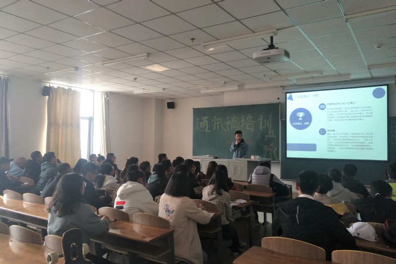 新闻网讯(通讯员井明宇 孙畅)为了使团委新成员尽快融入日常工作中来,进一步宣传好我院团学组织工作。bv1946伟德国际始于英国团委于11月3日在北湖校区主楼1520教室举行通讯稿写作培训会,本次培训由团委宣传部副部长于添政主讲。2018级团委全体成员及各班团支部委员均参加了本次培训。