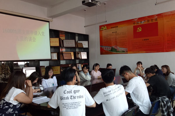 新闻网讯(通讯员张鑫)6月8日,根据学院入党积极分子管理规定,学院学生党支部对近期提交入党申请书的同学进行集中谈话。辅导员助理赵月老师代表支部全程参与了谈话。