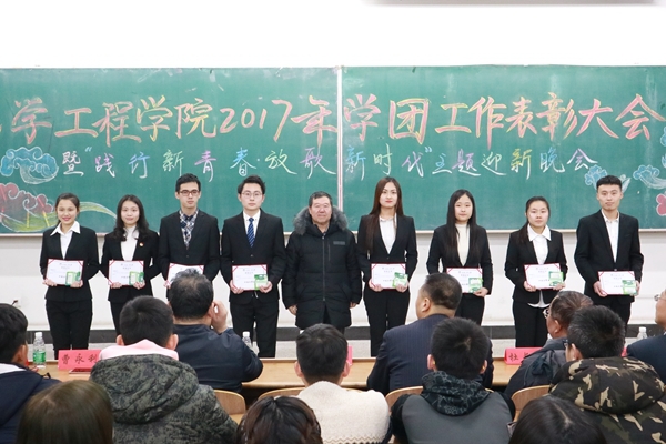 新闻网讯(通讯员张旭航许佳文)为进一步巩固伟德国际成果,浓厚学院学风氛围,全面推进我院各项工作的蓬勃发展。bv1946伟德国际始于英国于15日在北湖校区西阶302教室举行2017年伟德国际表彰大会暨“践行新青春,放歌新时代”主题迎新晚会。出席本次大会的有校学生工作处副处长付宏波、校学生工作处范婷婷、学院党委书记刘喜明、院长张龙、党委副书记曹永利、副院长杜长海、谭永志,制药工程系主任石富强、学院全体辅导员、辅导员助理,受表彰集体代表和个人及2017级全体学生。表彰会由学院团委书记杨楠主持。