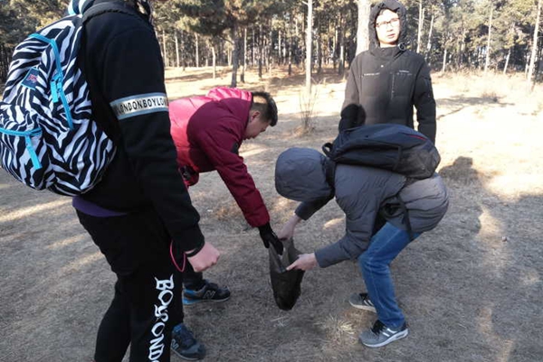 此次活动主要采取环潭徒步的形式。活动中,寒冷的天气并没有影响志愿者们的热情,大家在净月轻轨站相继集合后,手拿清扫工具在领队的带领下走向了净月国家森林公园的深处。一路上志愿者们主动清理路边的垃圾,宣传环保理念。徒步中,大家相互鼓励,并在愉快的心情中完成了十二公里的步行。