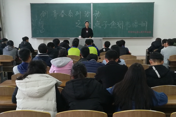 培训活动伊始,创新创业部副部长褚英豪首先从企划前要明确的问题入手,对企划的目的性、周密性、可行性等因素做了细致入微的分析。随后,又从前期调查、工作流程、时间安排、基本格式等四大方面对企划书的撰写做了深入的讲解。同时邀请校第八届金点子大赛的金奖获得者梅梦园以自己的亲身经历为例,对企划书中常出现的错误做了重点强调。活动在一对一的问题解答环节后圆满结束。