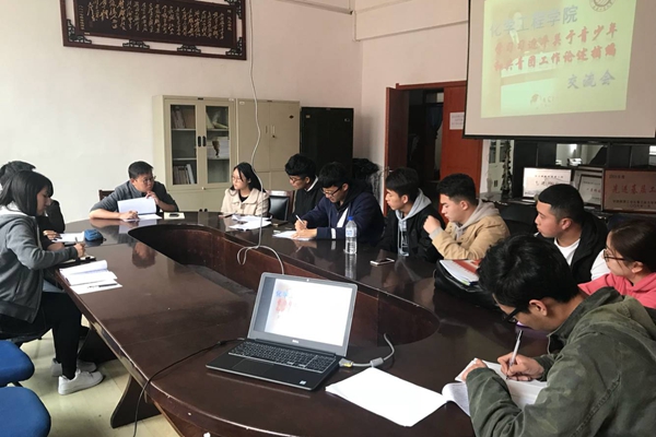 党的十八大以来,以习近平同志为核心的党中央,高度重视青少年和共青团工作,亲切关怀青少年健康成长。《论述摘编》中共收入189段习近平同志2012年11月29日至2017年5月3日期间关于青年的讲话、演讲、批示、贺信、回信等。学习交流会上,大家共同学习了青少年是国家的未来和民族的希望、加强党对青少年和共青团工作的领导、勇做走在时代前列的奋进者、开拓者、奉献者等篇章的内容。杨楠老师要求全体学生干部要深刻领会精神,要“注重发挥共青团、学校社团、学生自治组织的作用,调动学生参与的积极性,开展形式多样、健康向上、格调高雅的校园文化活动。”