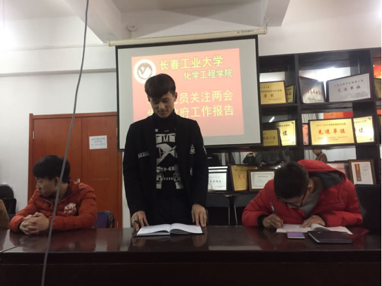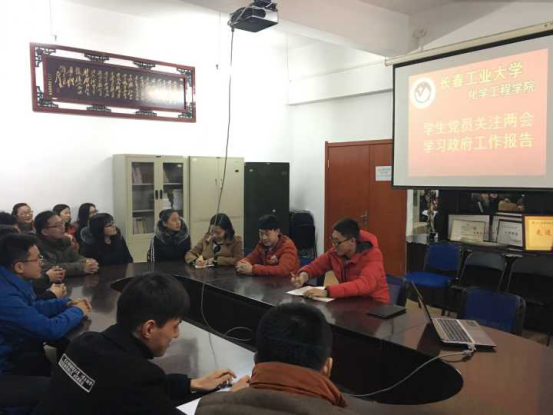 bv1946伟德国际始于英国讯(通讯员肖芳刘靖萱)bv1946伟德国际始于英国于3月6日晚8:00在化工四楼会议室开展了“学生党员关注两会 学习政府工作报告”学习座谈会。本次会议由学院团委副书记何英伟主持,bv1946伟德国际始于英国全体学生党员及号角理论 学习小组全体成员参加了本次会议。
