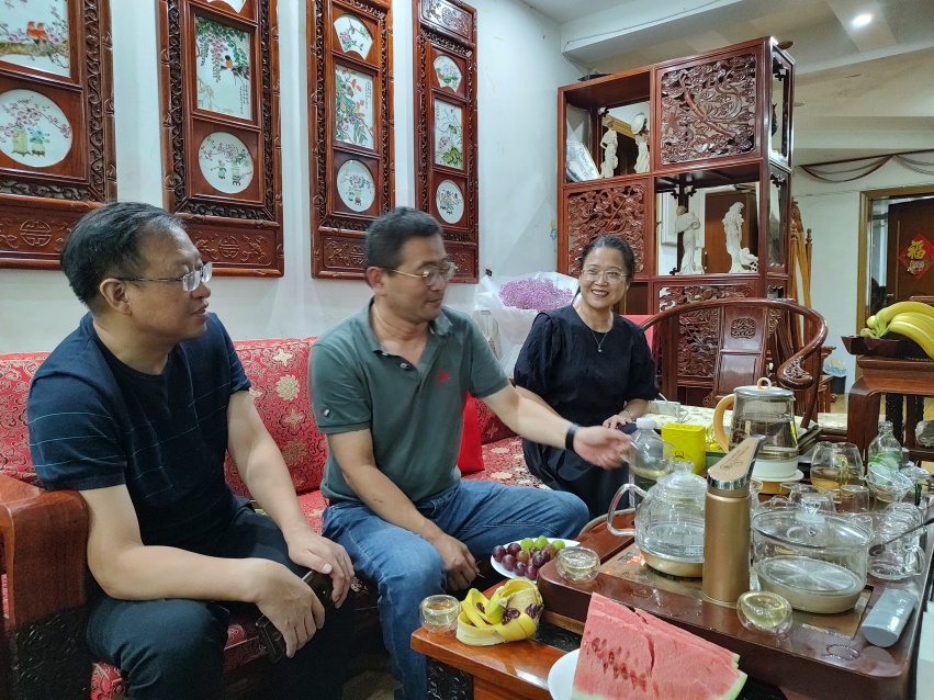 石富强书记一行三人先后走访了我校校友,上海开能健康科技集团股份有限公司研发部总监孙瑛博士,宁波健享源新材料科技有限公司总经理腾丽华博士。校友宁波市鄞州区统计局主任科员马祥陆参加了座谈。向多年来始终关心和支持母校事业发展的各位校友表示衷心感谢,并向校友们详细介绍了学院在科学研究、人才培养、社会服务、学科建设等方面取得的成就。同时,就校企合作等方面与校友们进行了深入探讨,并期待广大校友进一步加强与母校的沟通与交流,与母校共同发展。