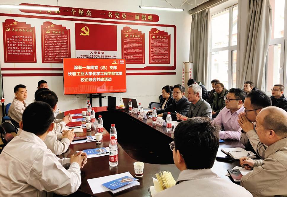 高光辉院长就我院专业建设,科研成果,合作交流等内容进行了介绍。涂装一车间党总支部代表们就目前生产、研发过程中存在的难点问题与我院教师进行了热烈深入地交流探讨,并就我院涂装专业实习达成共建共识。杨书记表示,希望以共建活动为契机,切实发挥校企各自优势,能够在双方长期友好合作基础上推进“产、学、研”的双向赋能发展模式,紧紧围绕吉林省“一主六双”高质量发展战略需求,推动产教融合。