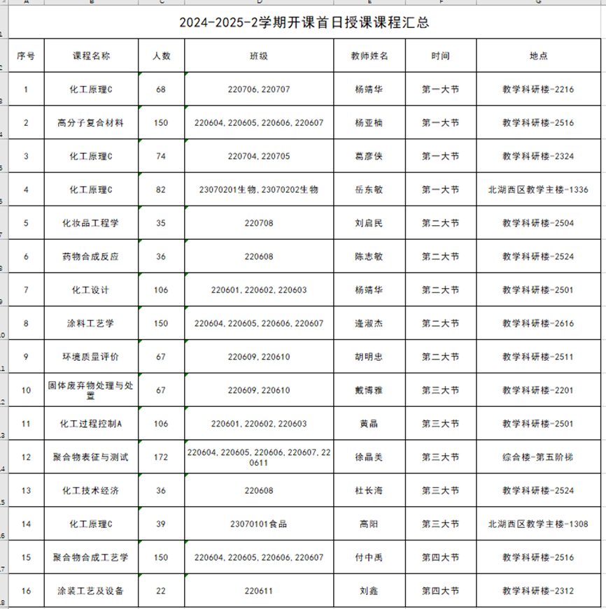 院领导随机选取《化工原理》、《化工设计》、《高分子复合材料》《环境质量评价》、《涂料工艺学》、《化妆品工程学》、《药物合成反应》等核心课程进行随堂听课,全程记录教学环节设计、课程思政融入及学生参与度情况。课后,学院院长与任课教师就教学内容优化、课堂互动形式创新等展开交流,强调“以学生为中心”的教学理念,鼓励教师结合工程教育认证要求,持续深化课程改革。
